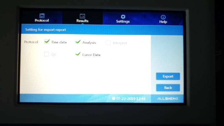 USP port 에 USB 를 꼽고 화면의 "Export" 를 누르시면 Data 가 USP 로 이동합니다.
