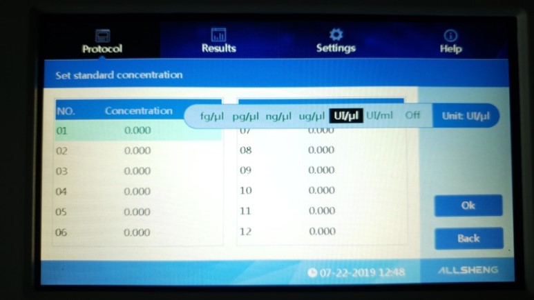 Standard가 설정이 되면 농도 지정을 통해서 바로 분석값을 확인이 가능합니다.