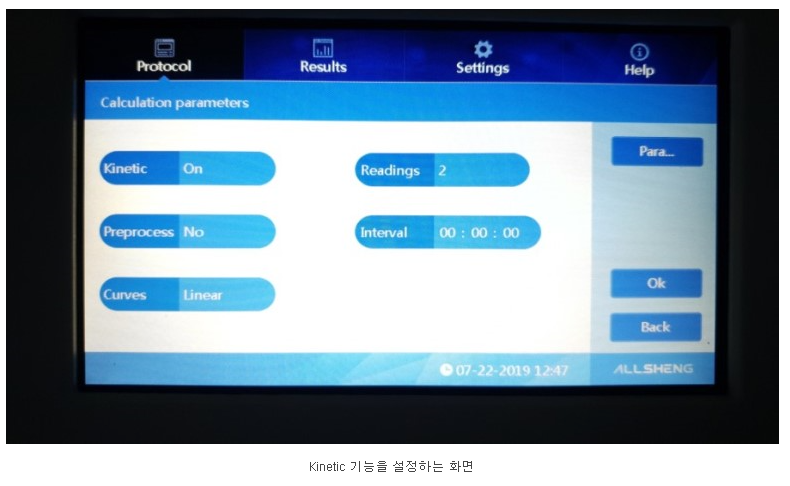원하시는 시간만큼 샘플의 흡광값 변화를 확인이 가능한 기능입니다.