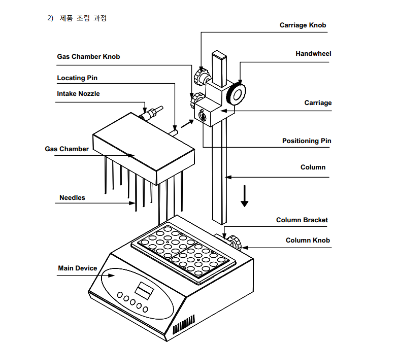 따라서, 질소농축을 위한 준비된 샘플용기의 지름을 알면, 블럭 2개를 선택하여 질소농축 Needle의 위치를 세팅할 수 있습니다.