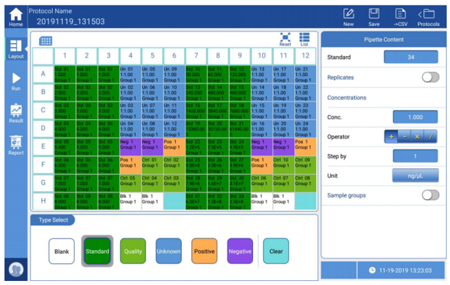 blank, standard, unknown, positive control, nagative control 등 설정이 가능합니다.
