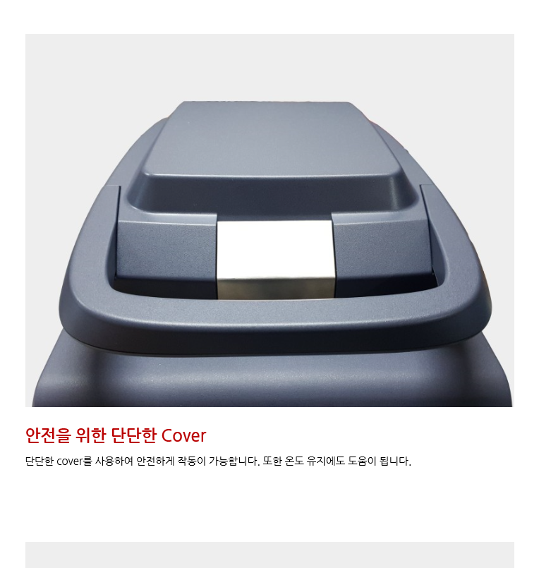 안전을 위해서 단단한 이중 Cover 로 되어 있어서 작동시에 안전과 내부의 온도가 보정되도록 온도유지에 도움이 됩니다.