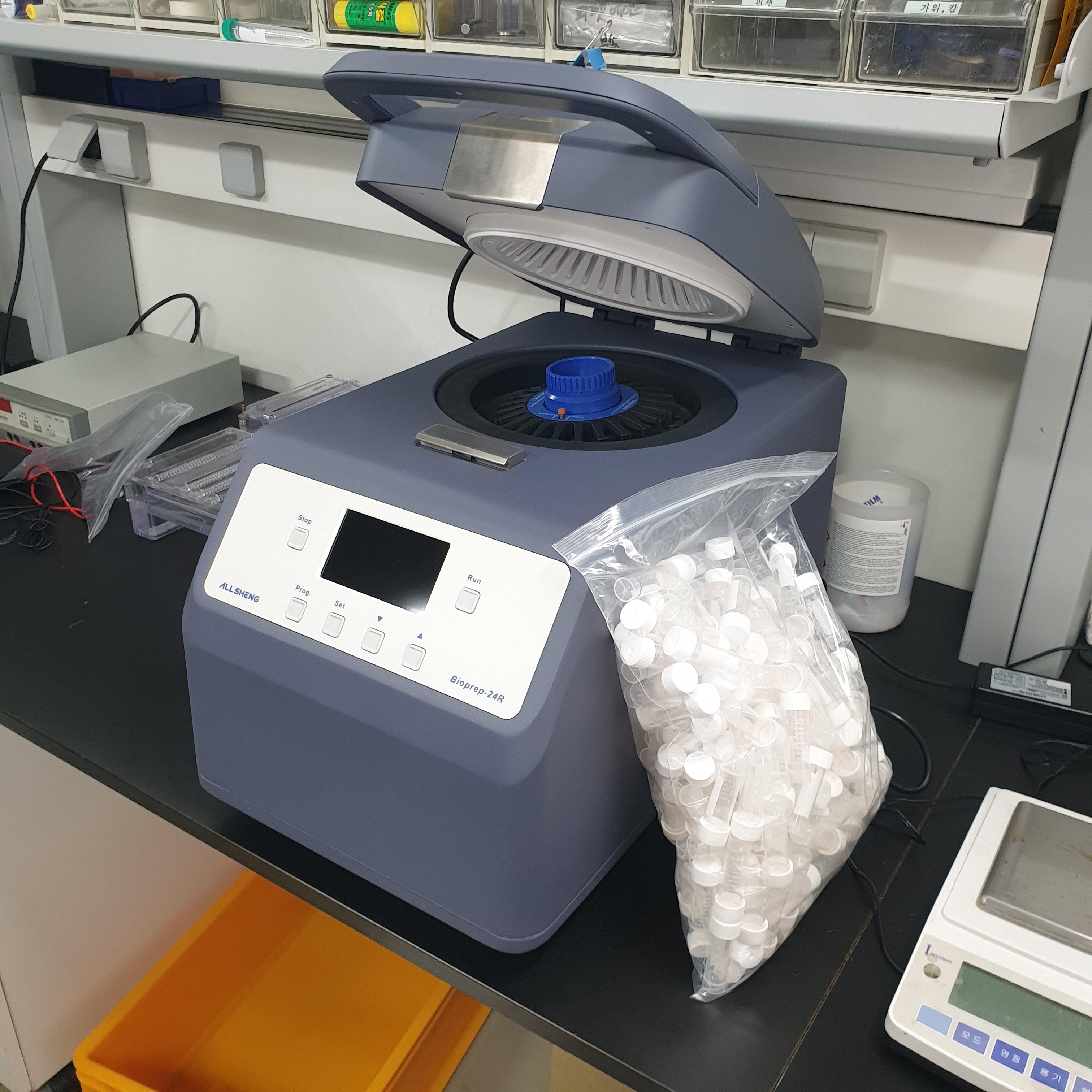 DNA, RNA, Protein 등을 추출하기 위한 일차적인 과정으로 동물, 식물, 균류 등의 다양한 조직 샘플을 잘라서 비드가 담겨져 있는 멸균튜브에 넣고 강력한 3D-Motion Shaking을 통하여 비드와 강력한 마찰력으로 빠르고 안전하게 샘플을 분쇄, 파쇄하여 핵산 및 단백질을 추출할 수 있도록 도와주는 장비 입니다.