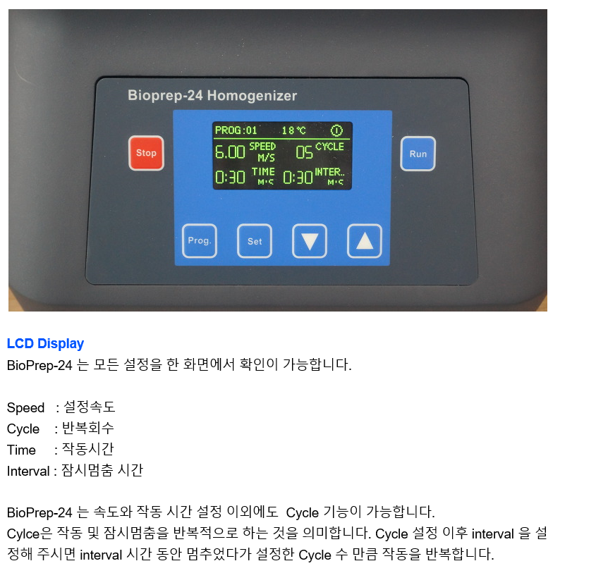 BIOPREP-24는 Bead를 이용하여 세포나 조직을 강력한 3D-Motion Shaking 을 통하여 파쇄 및 분쇄를 시켜서 DNA, RNA, Protein 을 얻기 위해 최적화 된 비드호모게나이저 입니다.