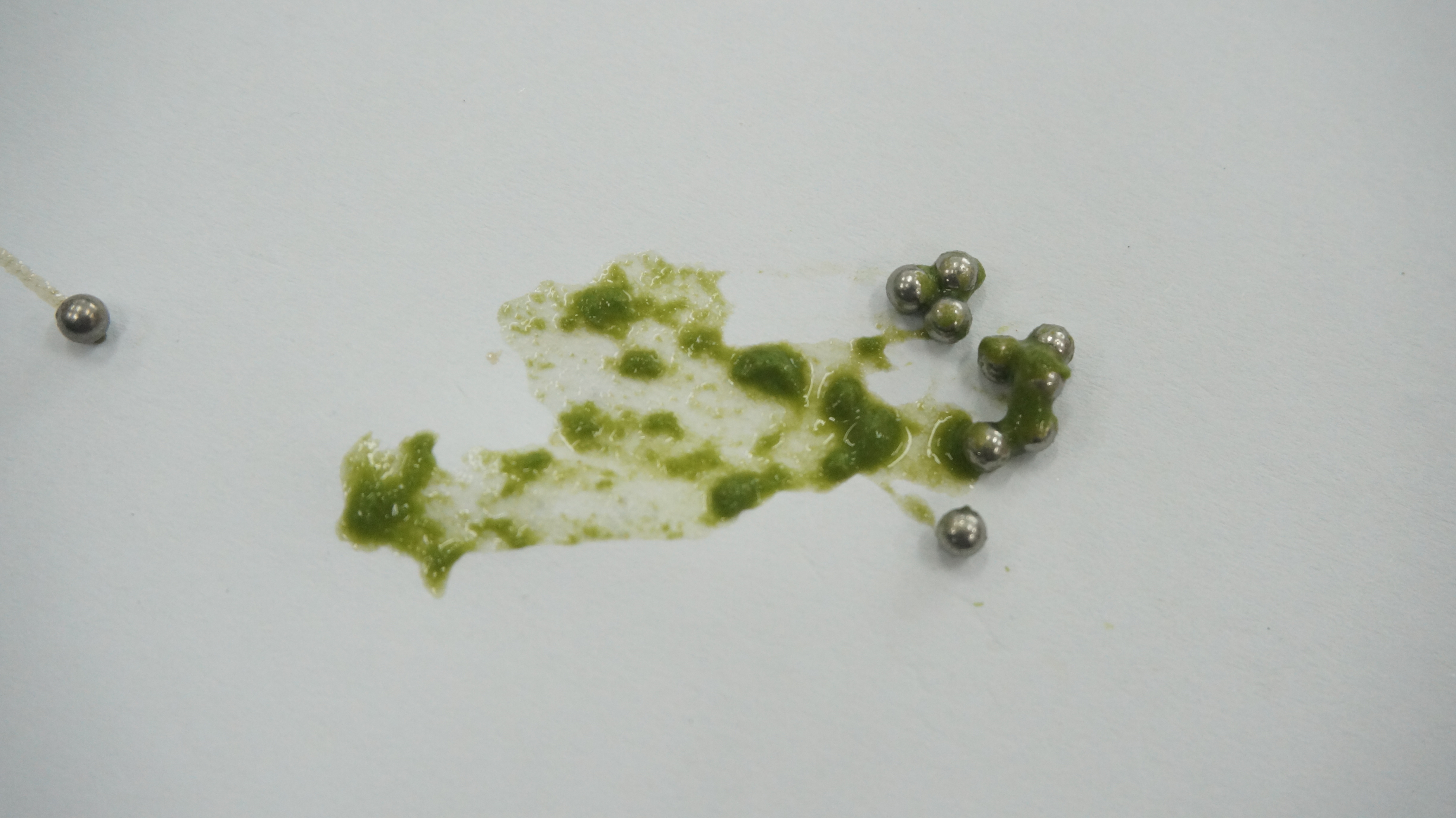 실제로 분쇄 능력을 보여드리기 위해 주위에서 흔히 볼 수 있는 나뭇잎을 샘플에 넣어 적당한 크기로 절편을 내어 BIOPREP-24 를 통하여 한번에 분쇄를 한 후 종이컵에 담아 보았습니다.