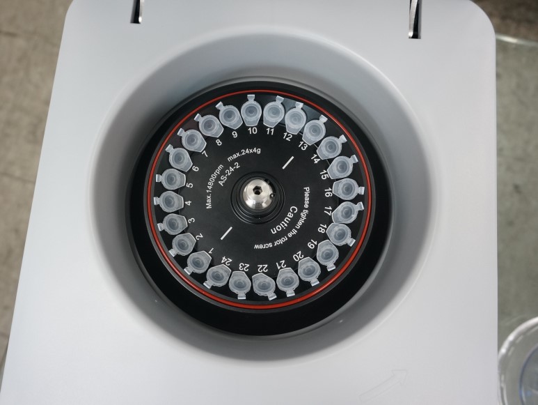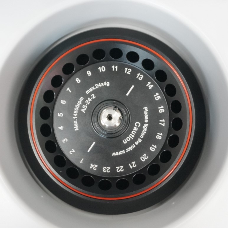 24개의 1.5ml tube를 원심분리가 가능하며, 최대 15000rpm까지 속도 조절이 가능합니다.