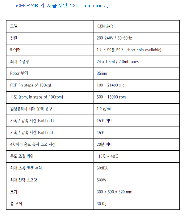 iCEN-24R 은 1.5ml/2.0ml Microcentrifuge Tube 전용 냉장 원심분리기 입니다.