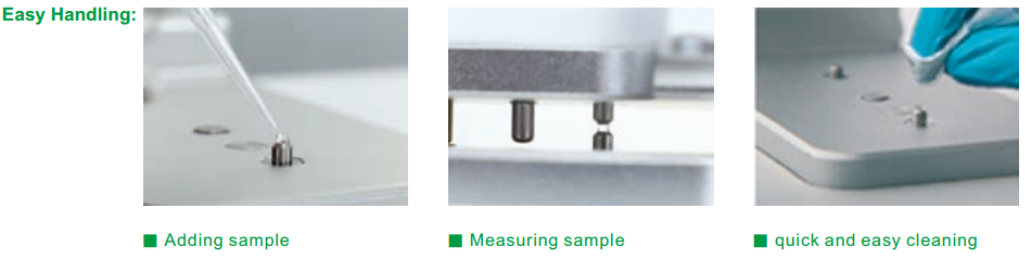 측정하고자 하는 샘플에 대하여 별도의 희석없이 샘플을 바로 바로 한방울씩 올려 놓고 간편하게 농도를 측정하면 됩니다.