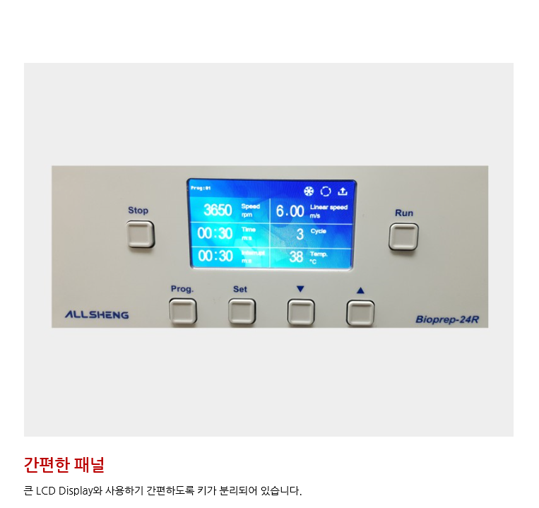 특히, Bioprep-24R 은 강력한 마찰력으로 발생하는 내부의 온도 상승을 냉장 시스템을 통해서 발열을 차단시키고 최상의 수득율과 변형 없는 샘플 원액을 얻어 낼 수 있도록 도와 줍니다.