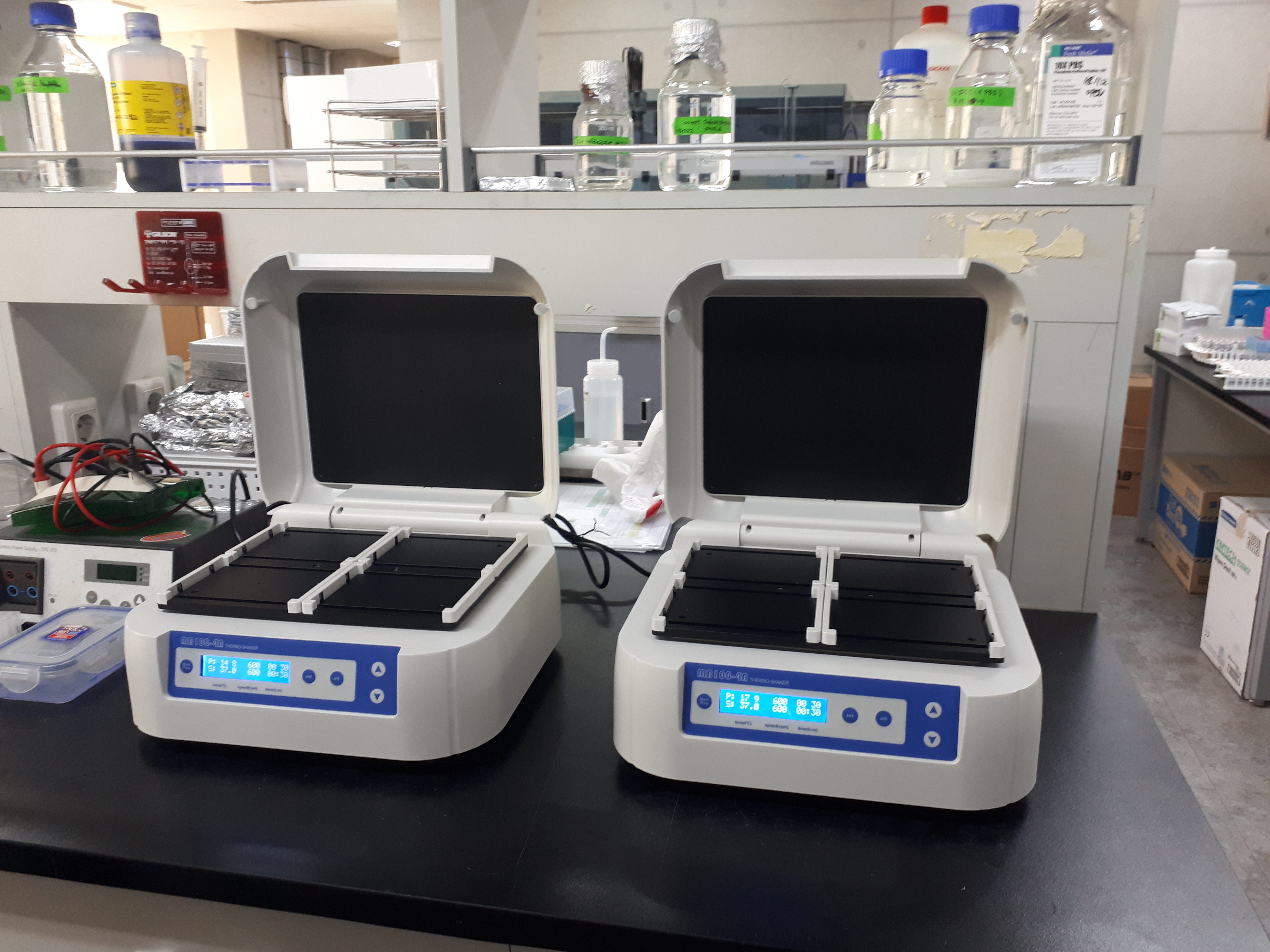 Microplate 전용 Thermo shaker 제품으로 4개 혹은 2개의 Microplate를 동시에 위, 아래에서 동시에 온도 조절 및 200~1500rpm까지 회전하여 반응효율을 높일 수 있습니다.