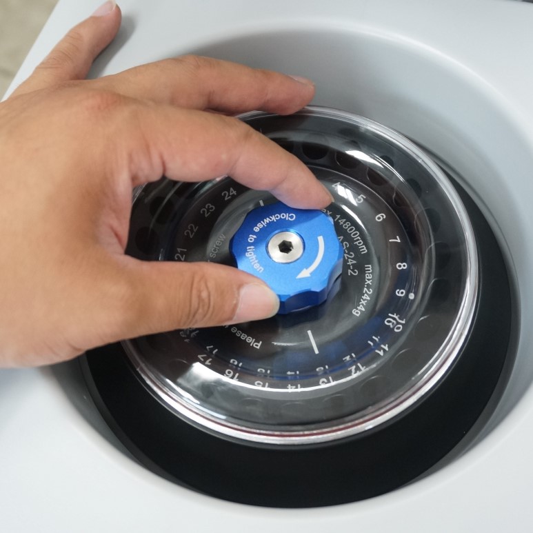 24개의 1.5ml tube를 원심분리가 가능하며, 최대 15000rpm까지 속도 조절이 가능합니다.