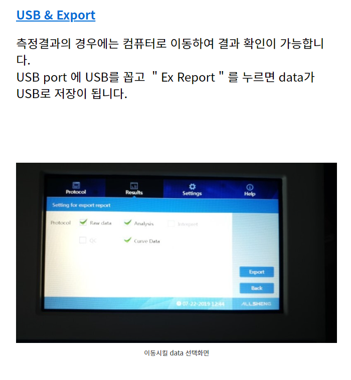 USB로 저장하여 엑셀파일로 데이터 작업이
