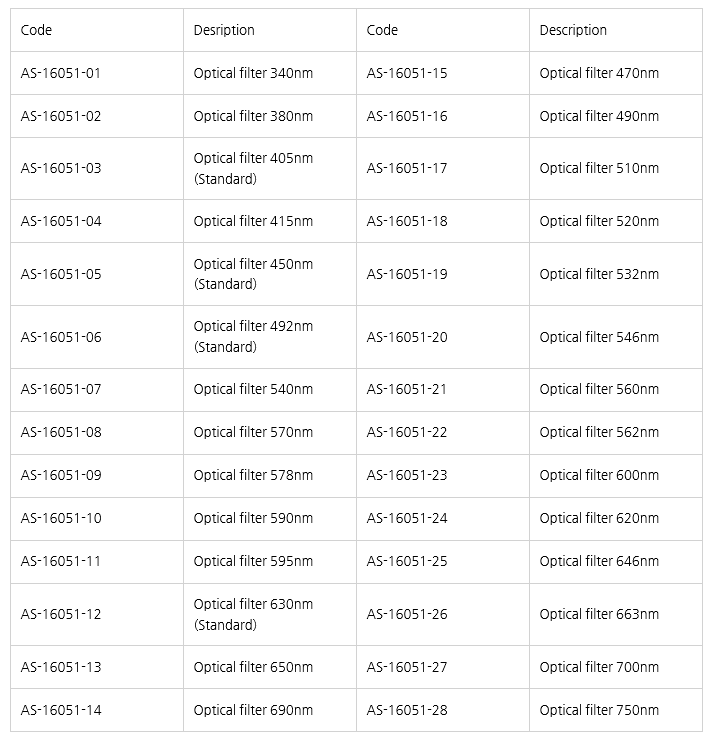 기본필터가 405nm, 450nm, 495nm, 630nm